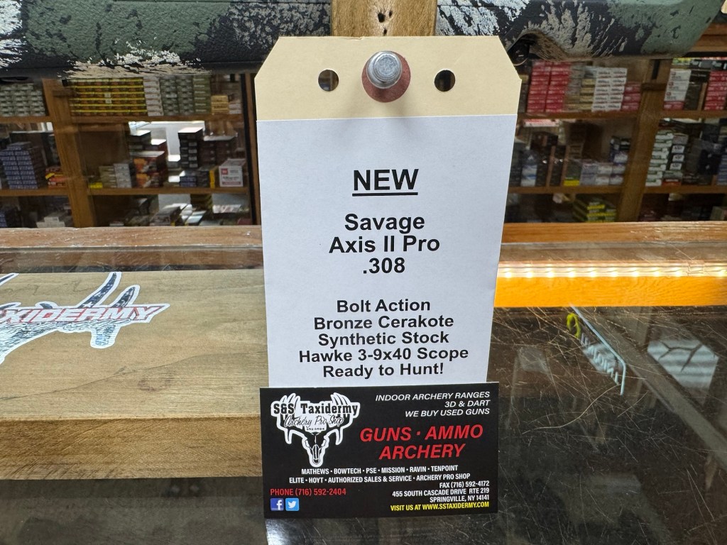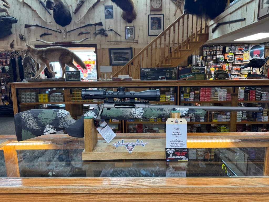 We just got in a Savage Axis II Pro in .308 and 30-06, a Henry .22 S/L/LR and a Stevens 334 30-06!